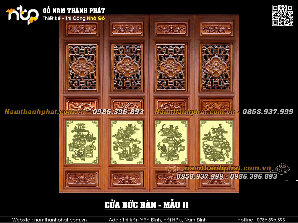 Mẫu 11: Cửa bức bàn với lá pano phía trên mẫu triện bình hoa thủng. Lá pano phía dưới mẫu Tứ bình cầu kỳ.