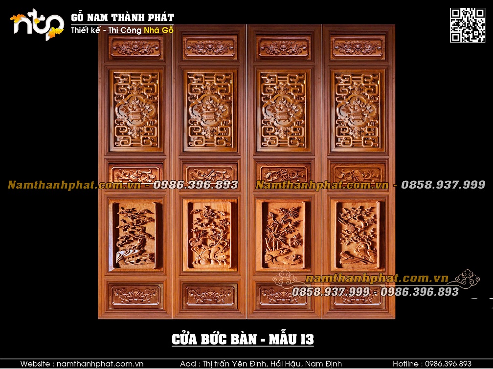 Mẫu 13: Cửa bức bàn với lá pano phía trên mẫu triện bình hoa đặc. Lá pano phía dưới mẫu Tứ quý.