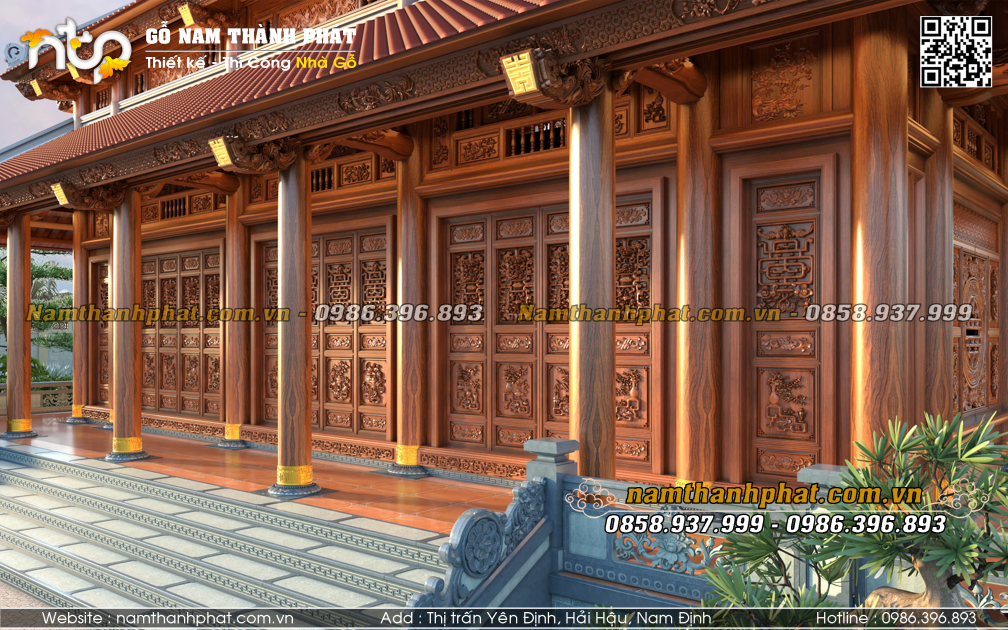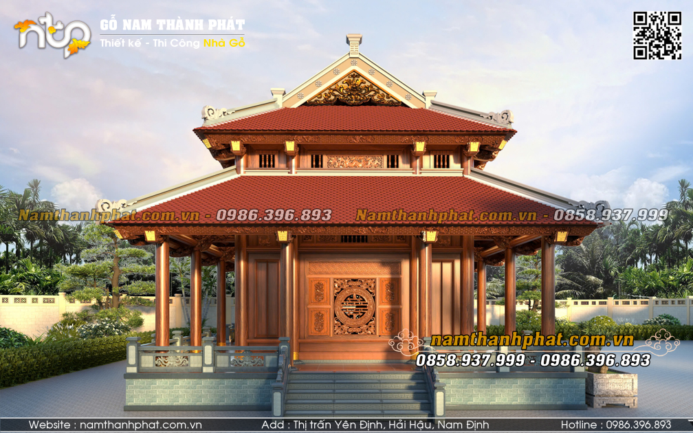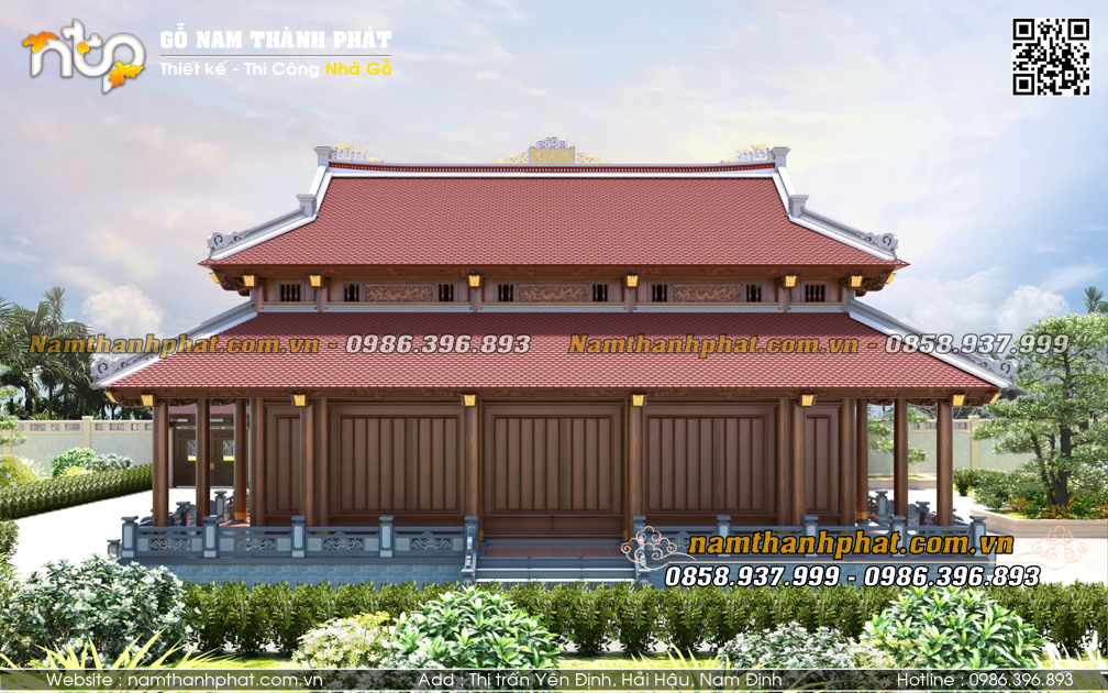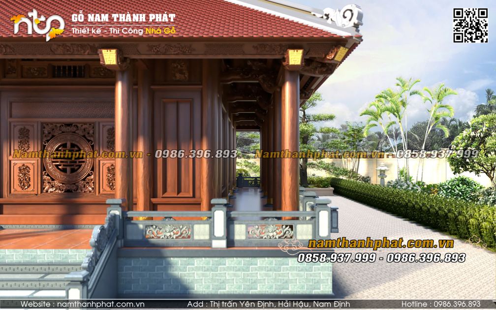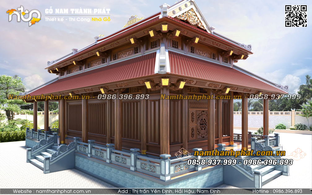 - Hiên chạy 4 mặt thông thoáng, có tam cấp lên từ cả 4 phía