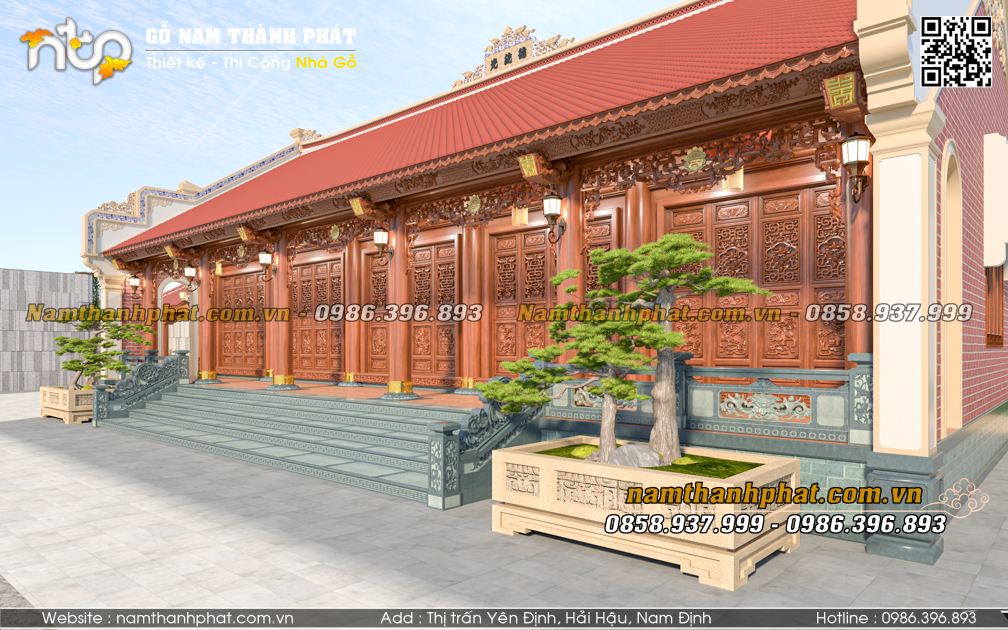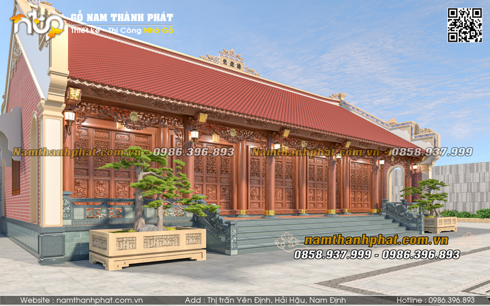 Mẫu nhà gỗ 5 gian thông hiên do Nam Thành Phát thiết kế không chỉ kế thừa tinh hoa kiến trúc truyền thống, mà còn được nghiên cứu kỹ lưỡng về tỷ lệ, công năng và thẩm mỹ, mang đến một không gian thờ tự – sinh hoạt hài hòa, trường tồn cùng thời gian.