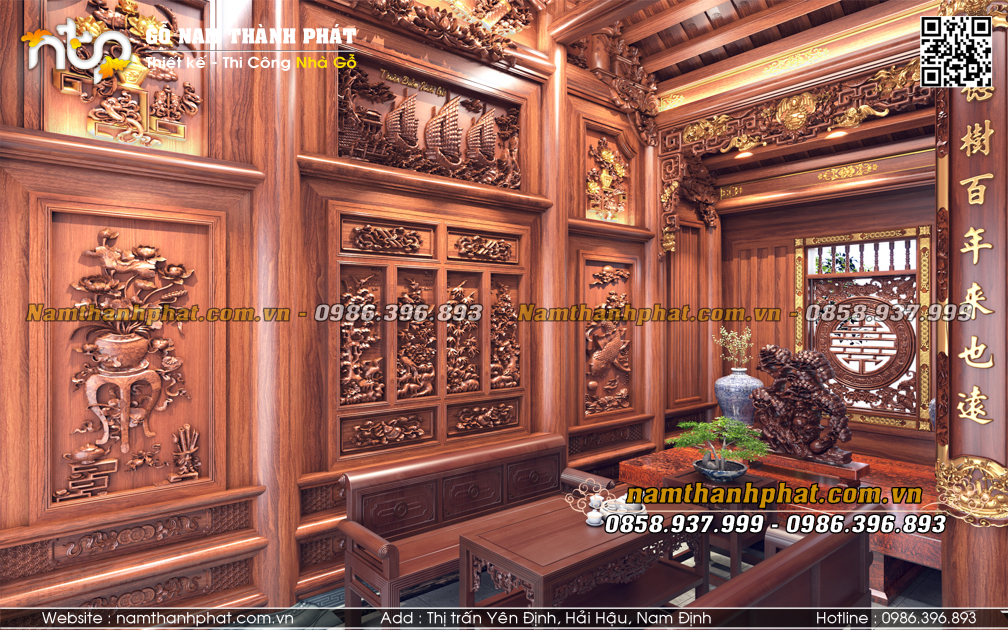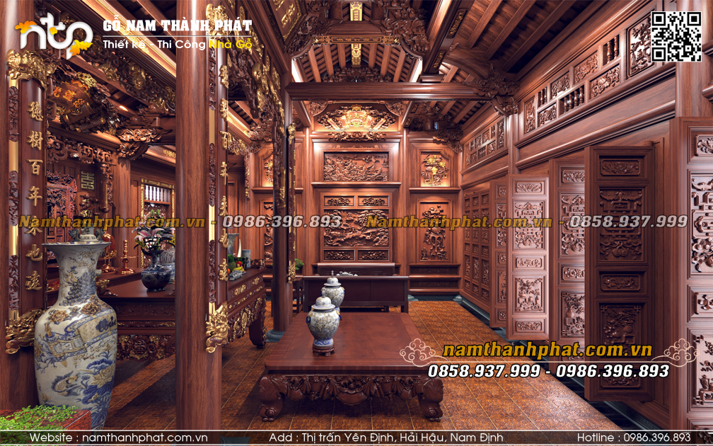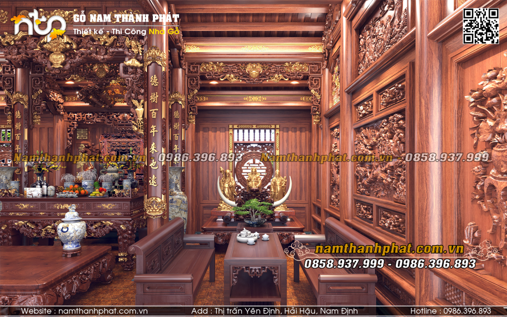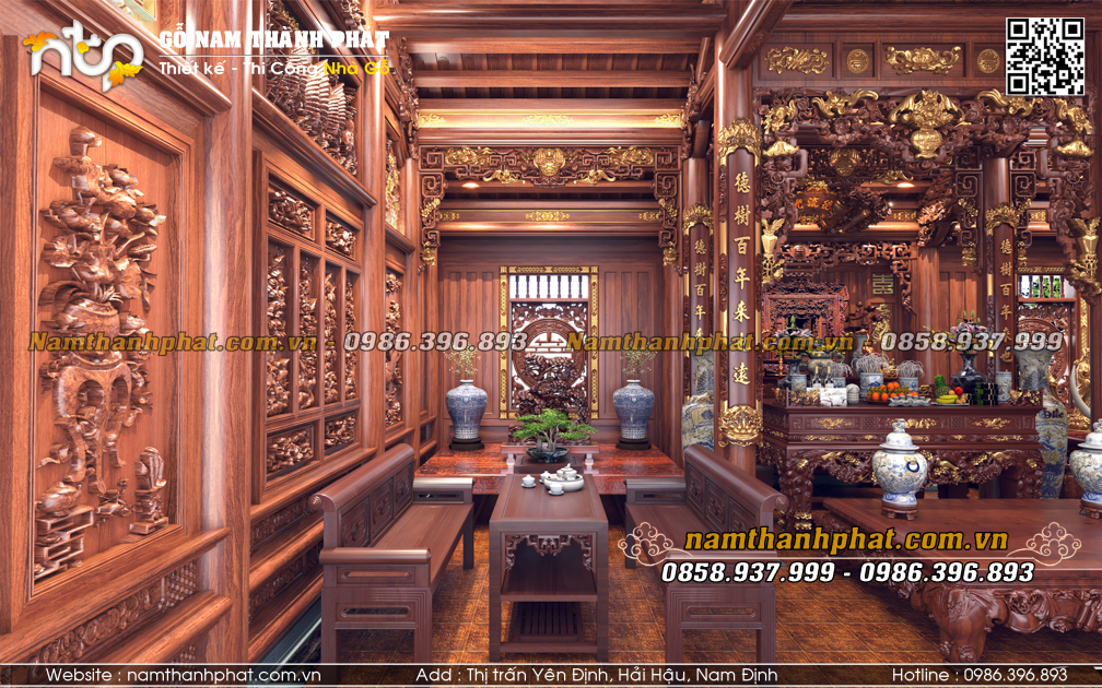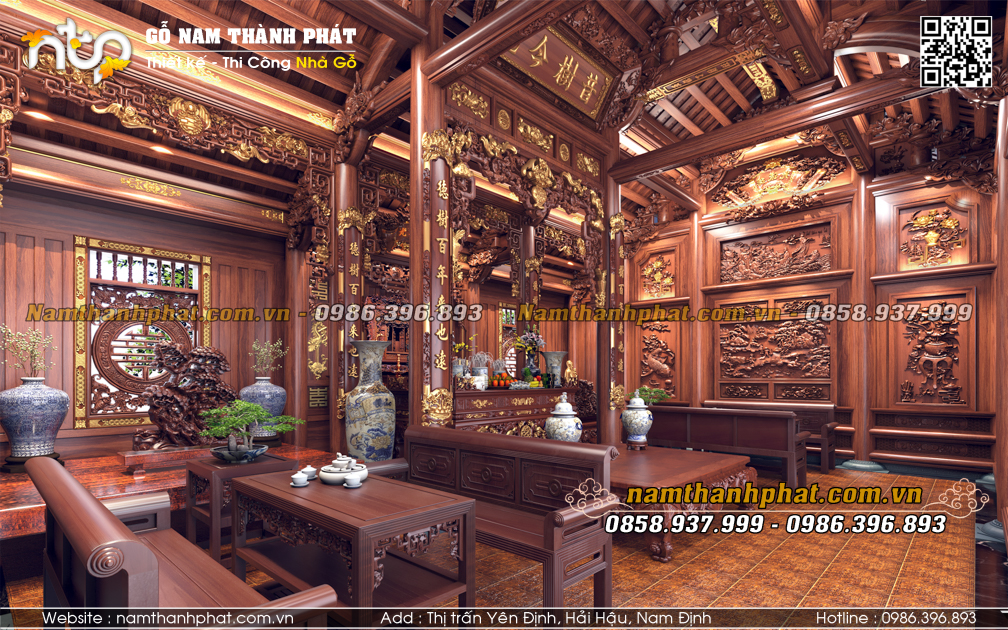 Từ lâu, không gian nội thất nhà gỗ 3 gian luôn được xem là “linh hồn” của căn nhà, nơi hội tụ nghệ thuật đục chạm tinh xảo, cách bố trí hài hòa cùng hệ kiến trúc vững chãi. Không chỉ là nơi thờ tự, lưu giữ giá trị văn hóa gia đình, nội thất nhà gỗ 3 gian còn thể hiện đẳng cấp và gu thẩm mỹ tinh tế của gia chủ.