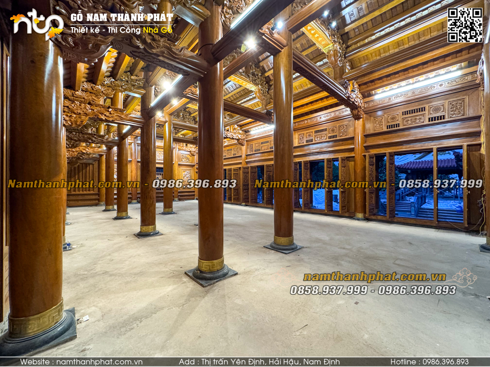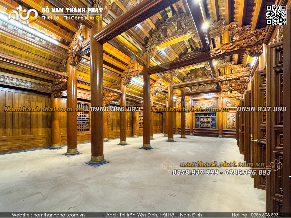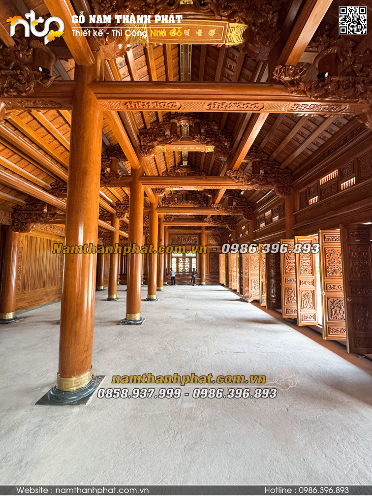 Công trình nhà gỗ 5 gian thông hiên mà Nam Thành Phát thi công là sự kết hợp trọn vẹn giữa kiến trúc truyền thống và tay nghề thủ công tinh xảo. Mỗi chi tiết đều được trau chuốt tỉ mỉ, mang đến một không gian vừa bề thế, vừa đậm dấu ấn văn hóa Việt. Nếu quý vị đang tìm kiếm giải pháp thi công nhà gỗ cổ truyền sang trọng và chuẩn phong thủy, Nam Thành Phát sẵn sàng đồng hành để hiện thực hóa mong muốn của gia chủ.