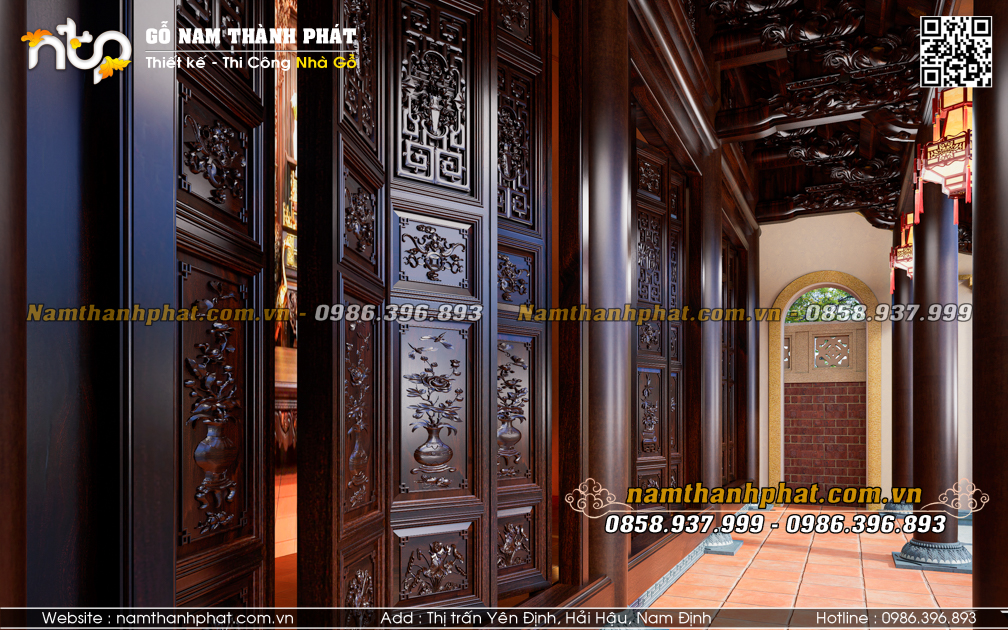 Giữa lòng Nam Định – vùng đất nổi tiếng với những công trình gỗ cổ truyền, mẫu nhà gỗ 3 gian có hậu cung dưới đây mang đến vẻ đẹp sang trọng, bề thế nhưng vẫn giữ trọn hồn Việt. Được thiết kế chuẩn phong thủy, sử dụng chất liệu gỗ tự nhiên Lim Lào cao cấp cùng đường nét chạm khắc tinh xảo. Công trình không chỉ là nơi thờ cúng gia tiên mà còn là niềm tự hào về tinh hoa kiến trúc truyền thống. Hãy cùng Nam Thành Phát chiêm ngưỡng chi tiết mẫu nhà gỗ đặc biệt này quý vị nhé.