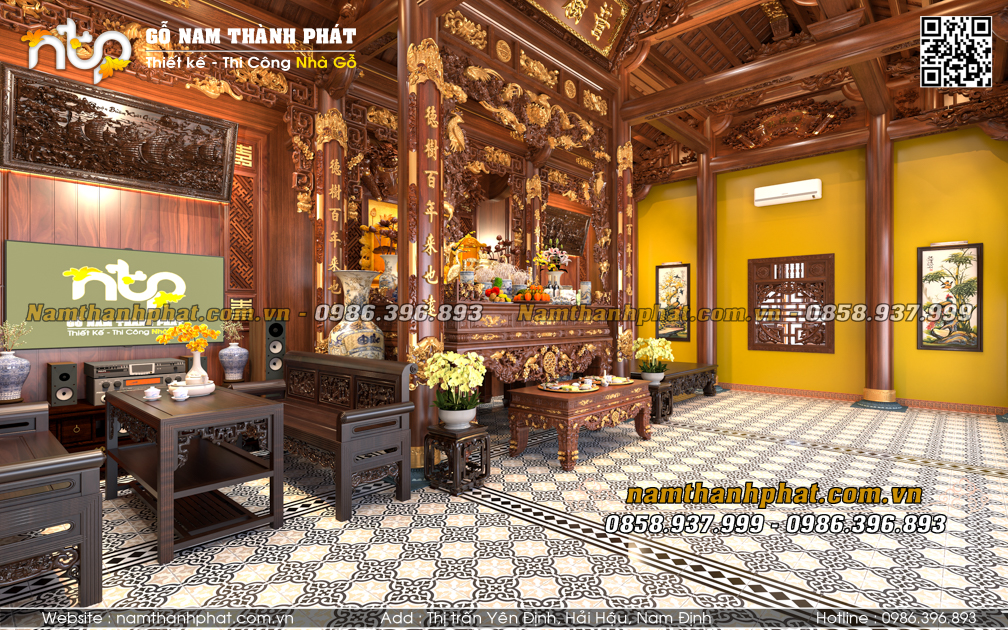 Trong những năm gần đây, nội thất nhà gỗ 3 gian không chỉ được yêu thích bởi giá trị truyền thống mà còn ngày càng được làm mới bằng những giải pháp thiết kế sáng tạo. Nổi bật trong số đó là mẫu nhà gỗ 3 gian với vách tường xây màu vàng chanh – sự kết hợp hài hòa giữa kiến trúc cổ truyền và tư duy thẩm mỹ hiện đại, mang đến không gian sống ấm cúng, trang nghiêm nhưng không kém phần ấn tượng. Cùng Nam Thành Phát tìm hiểu ngay tại bài viết dưới đây quý vị nhé.