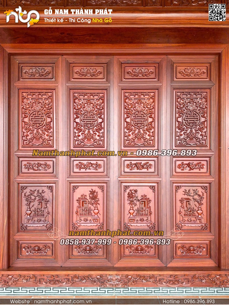 Cửa bức bàn gỗ Lim Lào siêu bền, đục chạm cực đẹp, ít bị ảnh hưởng bởi thời tiết - giải pháp tối ưu cho các công trình hướng Tây.