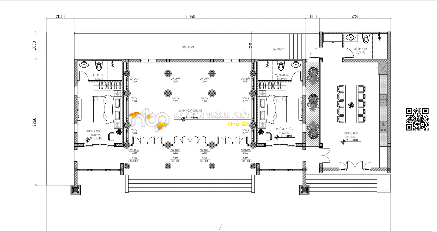 Dưới đây là 2 mẫu mặt bằng được coi là tiêu chuẩn, được các KTS của Nhà gỗ AFP Nam Thành Phát tìm tòi và nghiên cứu kỹ lưỡng, vừa đảm bảo các kích thước rơi vào cung đỏ theo thước lỗ ban phong thủy, lại vô cùng thuận tiện cho sinh hoạt thường ngày cũng như bày trí, sắp xếp đồ đạc..